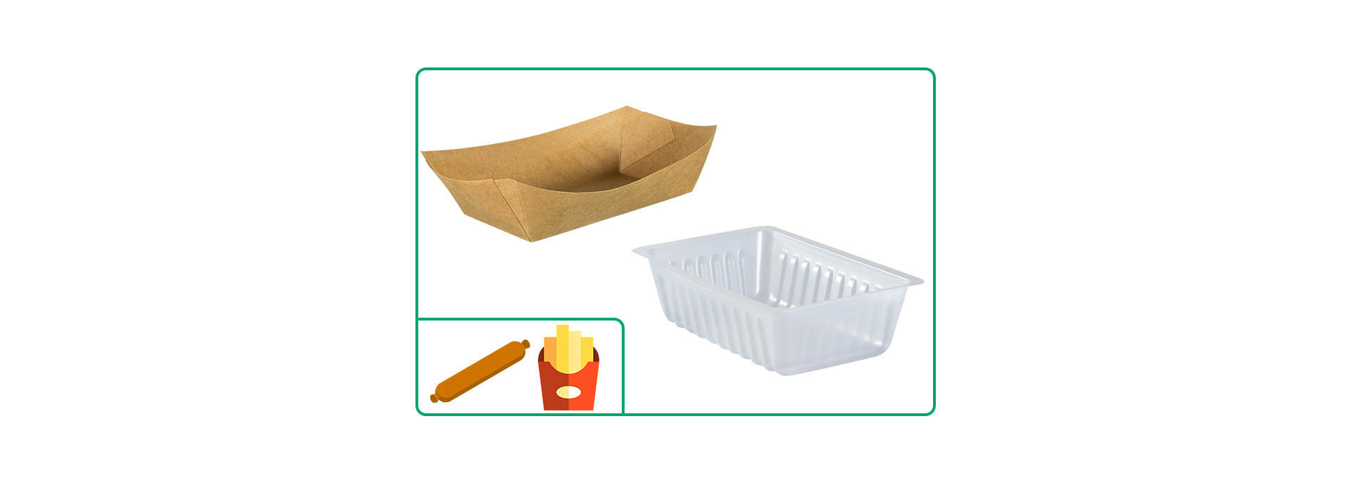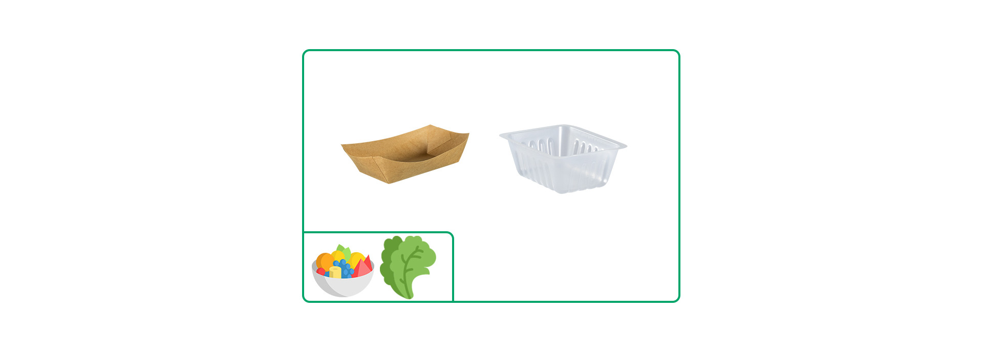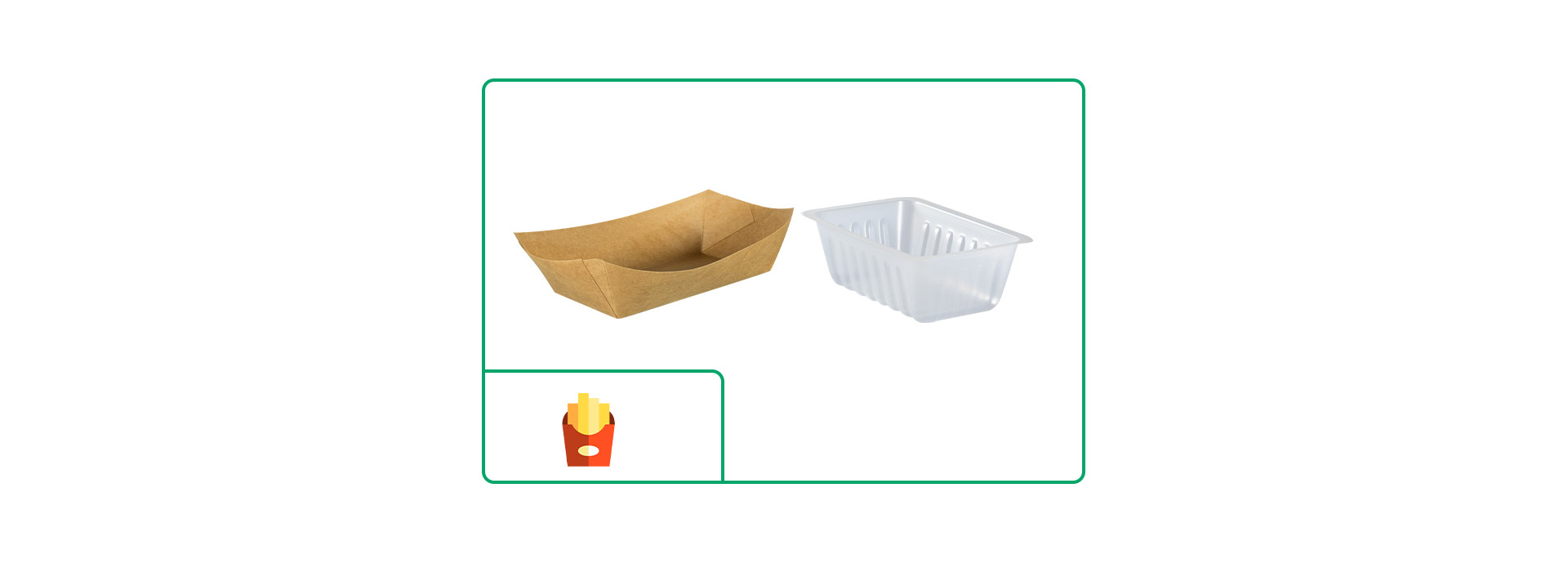 Il existe une variété de barquettes de différentes matières et tailles pour répondre aux besoins que vous rencontrez. Les barquettes ont l’avantage d’être utilisables pour tous les aliments : frites, crudités, salades…