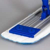 Mettre la mop adaptée à votre besoin par terre et coller le balai à cette dernière grâce au velcro.