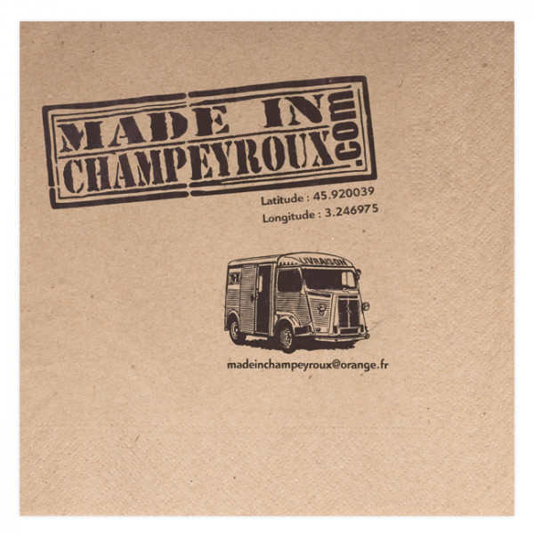 Afin de communiquer au mieux, Thouy vous propose de personnaliser vos serviettes en ouate kraft. C'est un excellent moyen pour améliorer votre visibilité et marquer les esprits de vos clients ! Avec leur grand format déplié de 40 x 40 cm, nos serviettes en papier jetables sont recommandées pour les professionnels et les associations pour l'organisation de repas associatifs, les tables de réceptions, les brasseries, la vente à emporter...