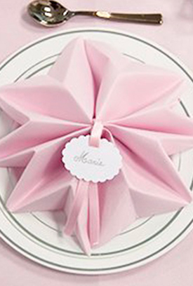 L'astuce Thouy : Pour un pliage de vos serviettes plus facile et un plus bel effet, nous vous conseillons de réaliser vos pliages de serviettes avec des serviettes en intissé soft à l'aspect tissu. Découvrez vite toute notre gamme des serviettes jetables et leur large palette de couleurs.